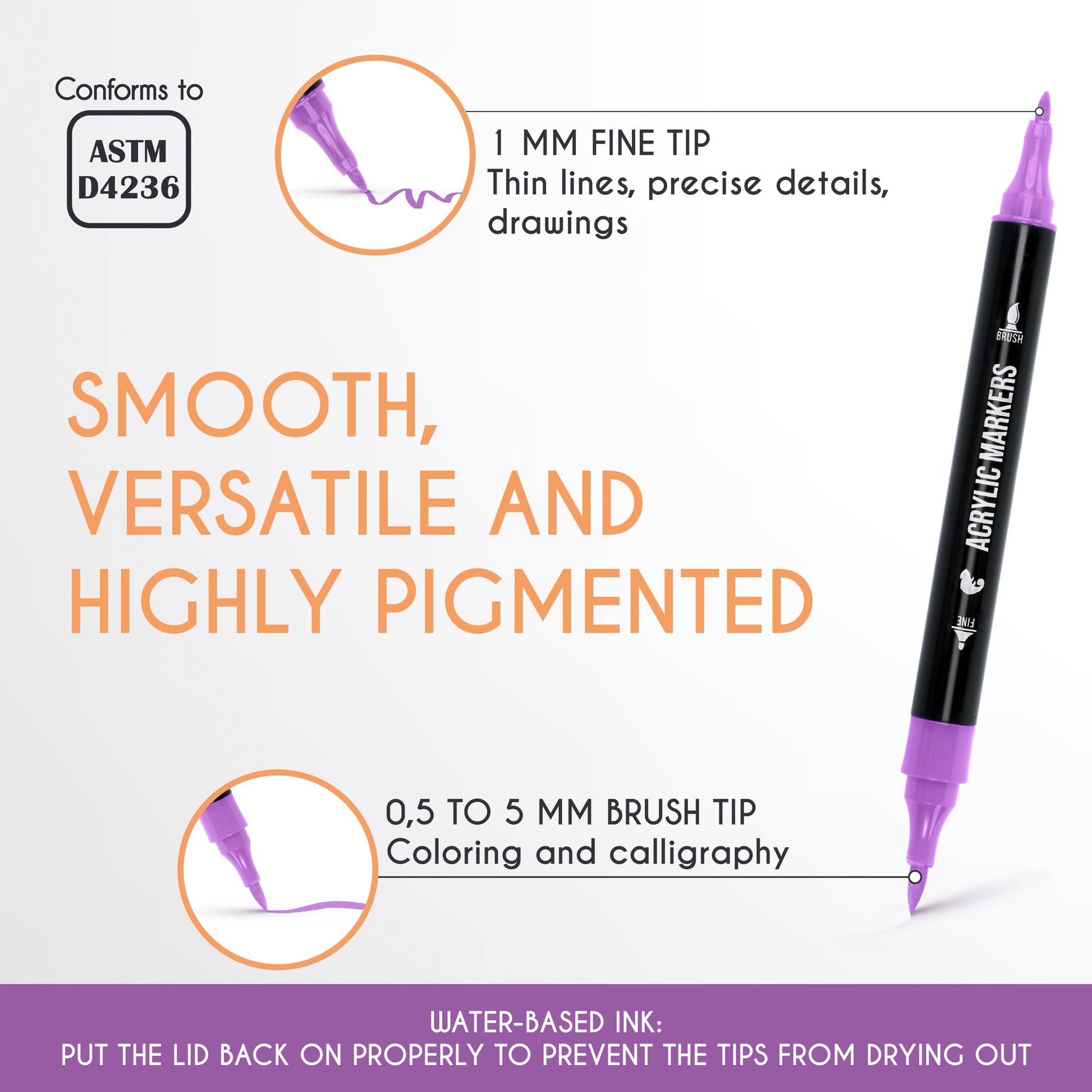 Erstellen Sie filigrane Details und kräftige, schwungvolle Striche mit zwei Spitzen, die sich jedem Stil anpassen. Diese Acrylmarker mit hoher Pigmentdichte liefern lebendige Farben mit hoher Deckkraft und einem gleichmäßigen, konsistenten Farbauftrag auf Steinen, Papier, Leinwand, Holz, Kürbissen und vielem mehr. Sie trocknen schnell und sind lichtbeständig, um Verschmieren zu verhindern und die Leuchtkraft der Kunstwerke zu erhalten. Dank ihres ergonomischen Designs sind sie auch bei längerem Gebrauch bequem in der Handhabung und eignen sich perfekt für alltägliche Projekte und saisonale Bastelarbeiten wie das Dekorieren von Halloween-Kürbissen.